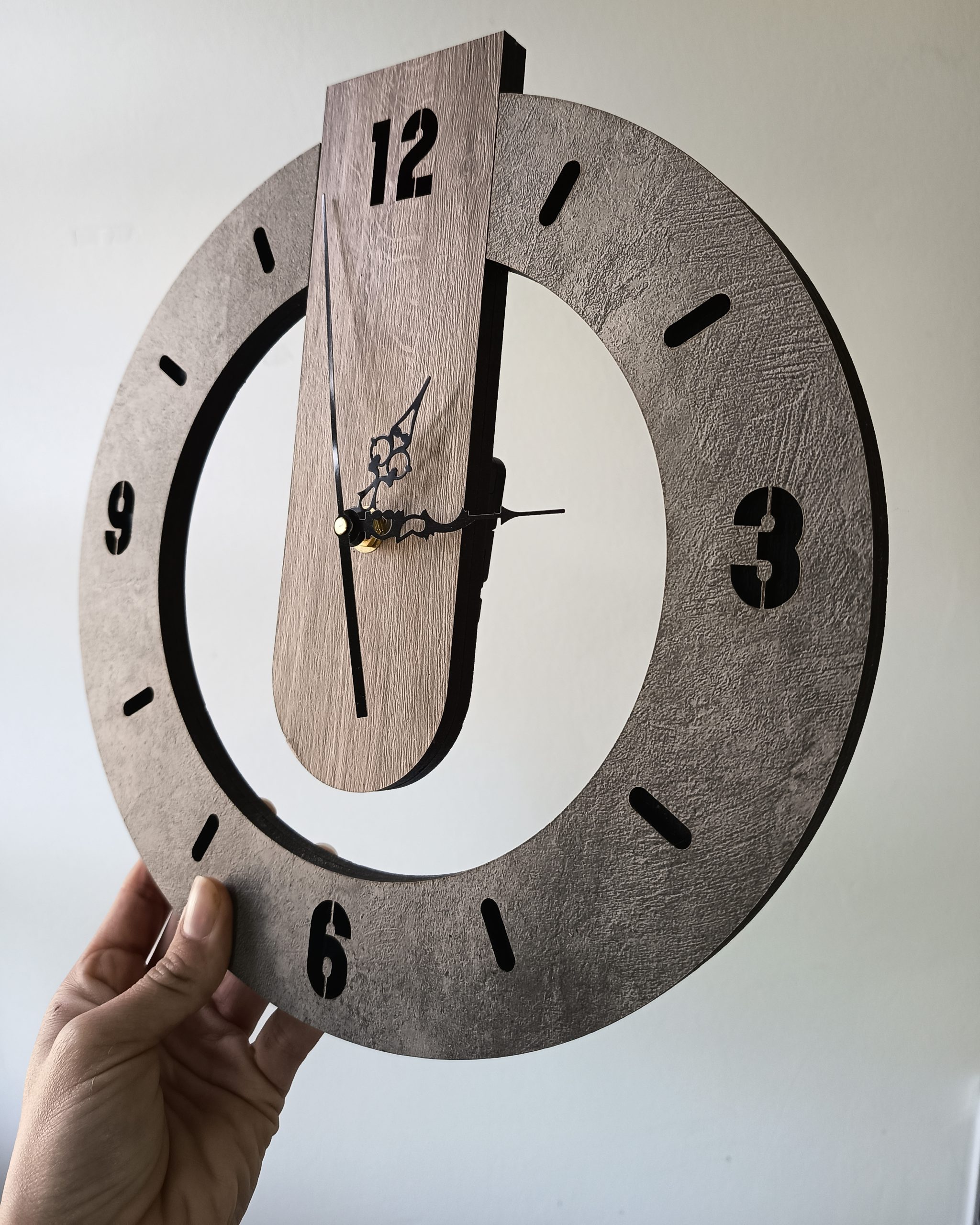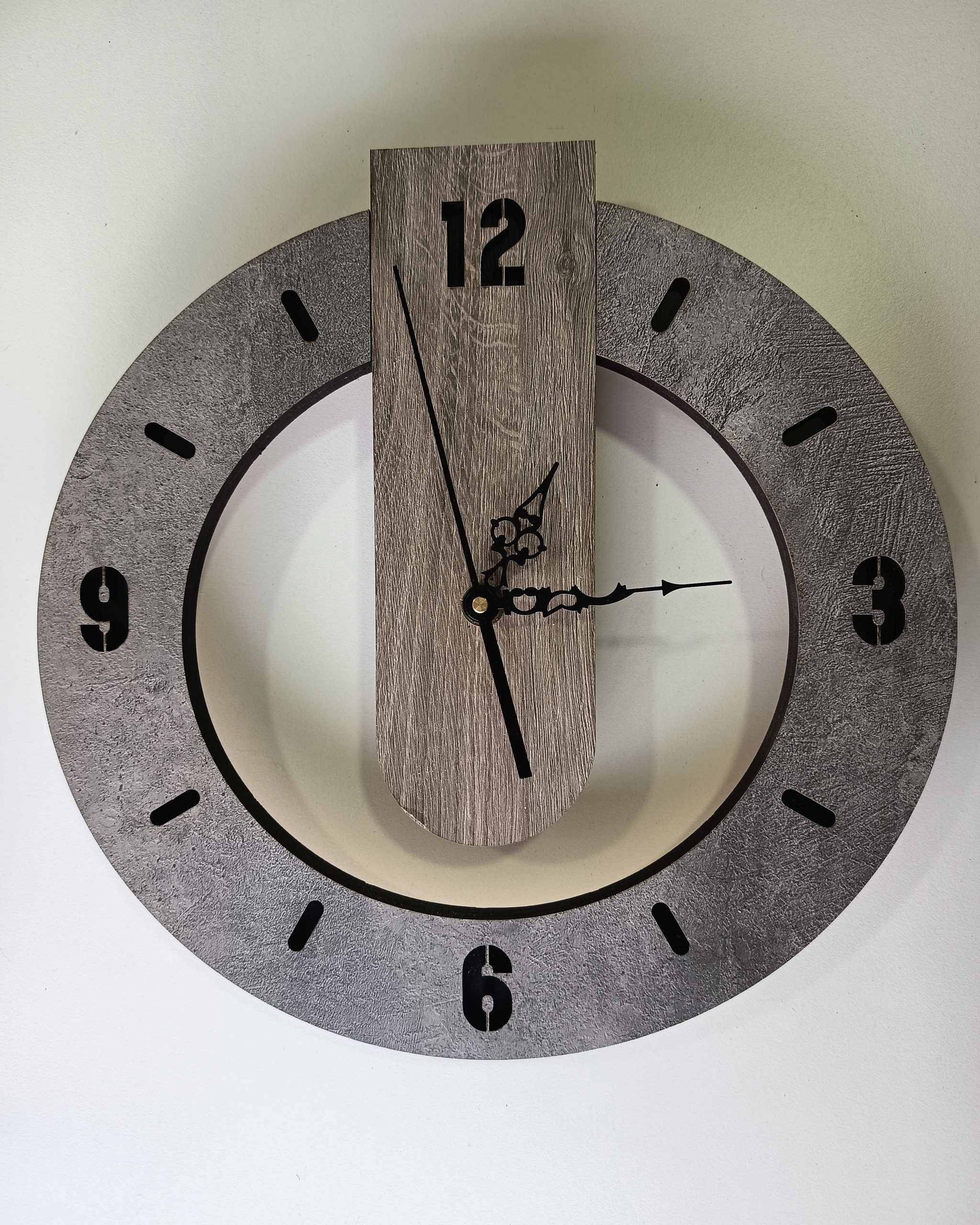 Nuestros relojes están elaborados en madera MDF laminada en capas, con un acabado texturado que resalta las vetas y brinda una sensación natural y sofisticada.