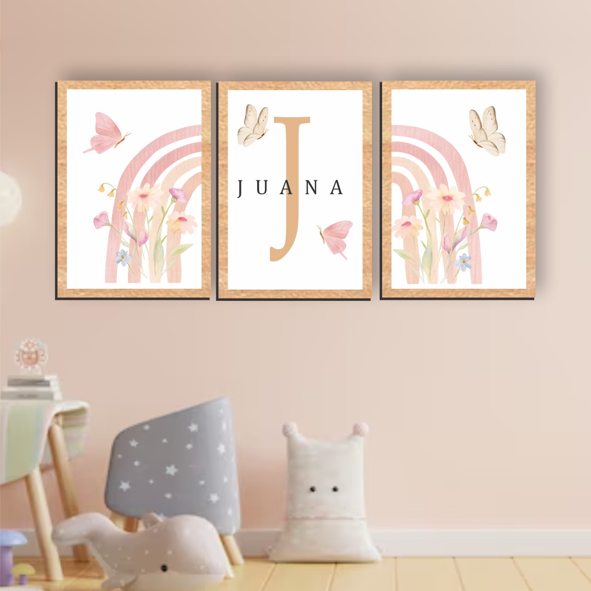 Set cuadros X3 animalitos con nombre personalizado impreso ideal para habitaciones infantiles